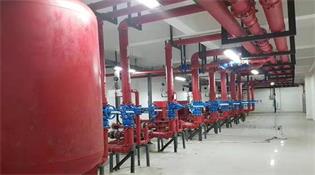 消火栓灭火系统的室内消火栓给水管道若管径≤100mm时,采用螺纹连接;大于100mm采用法兰或卡箍式连接。阀门通常采用闸阀或蝶阀。消火栓箱安装分为明装、暗装和半明装,管道通过钢筋混凝土水箱壁,应安装刚性或柔性防水套管。